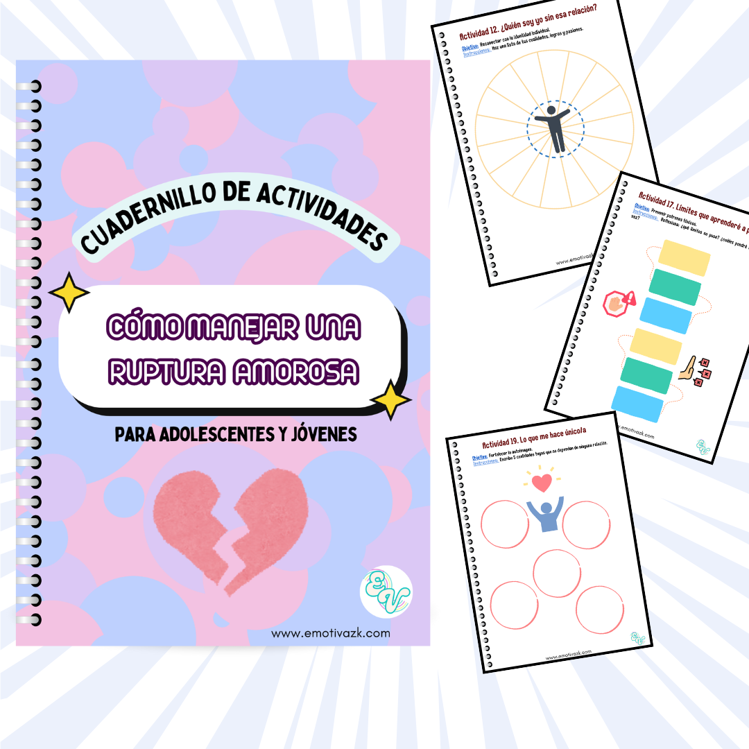 Este cuadernillo es una guía terapéutica con 20 actividades diseñadas para ayudar a procesar el dolor de una ruptura, soltar lo que ya no te hace bien y volver a ti mismo/a con más fuerza.